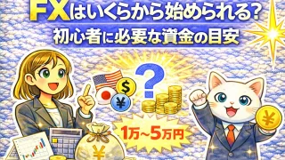 ホーム > お金 > FX > FXはいくらから始められる?初心者に必要な資金の目安を解説 「FXを始めたいけれど、数十万円、数百万円という大金がないと無理だと思っていませんか?」 「まずは少額から試してみたいけれど、いくらあれば安全に始め...