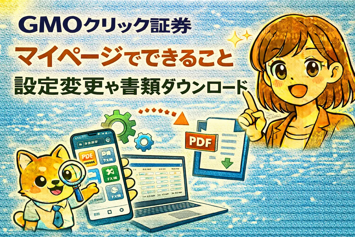GMOクリック証券のマイページは、取引の画面ではなく、口座管理の中心です。 住所・連絡先の更新、通知設定、書類ダウンロード、取引履歴のCSV出力、マイナンバー確認、口座間の資金振替など、 「後回しにしがちな重要操作」をまとめて扱えます。