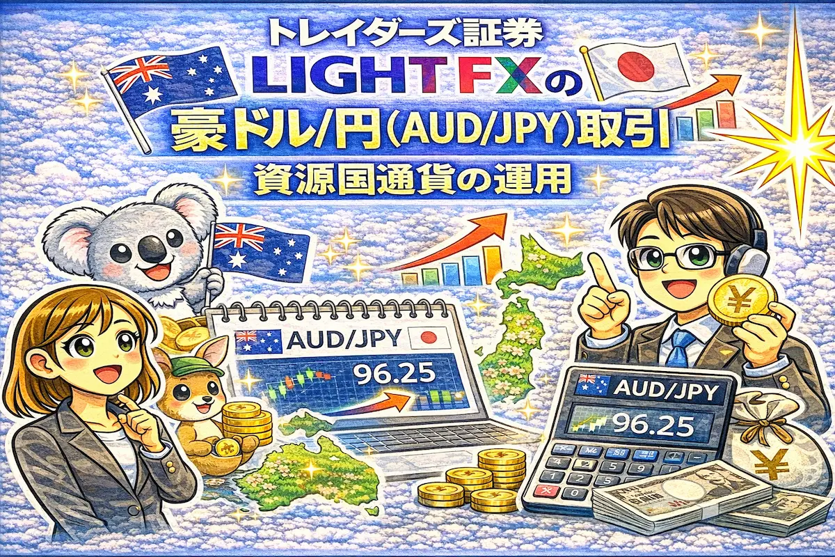 FXトレーダーの間で根強い人気を誇る「豪ドル/円(AUD/JPY)」。かつては高金利通貨の代名詞として知られていましたが、現在は資源国としての力強いファンダメンタルズと、適度なボラティリティを併せ持つ「攻守に優れた通貨」として注目されています。トレイダーズ証券のLIGHT FXは、この豪ドル取引において業界最高水準のスワップポイントと、極限まで抑えられたスプレッドを提供しています。本記事では、豪ドルの特性を活かした攻略法から、LIGHT FXならではの運用メリット、さらにはリスク管理まで徹底的に解説します。