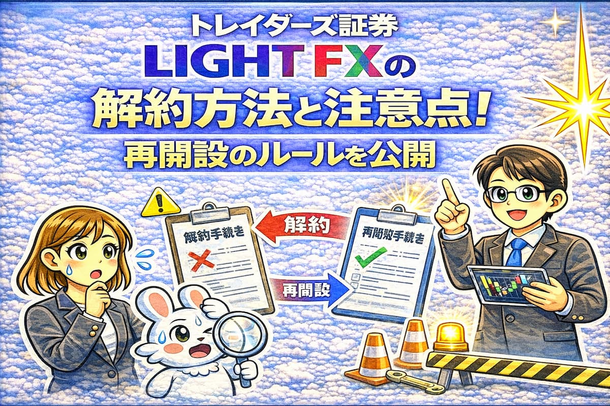 FX口座の解約は、単に「アプリを消す」だけでは完了しません。適切な手順を踏まずに解約してしまうと、税務署への報告に必要な書類がダウンロードできなくなったり、将来「やっぱりまた使いたい」と思った際の再開設で不利になったりするリスクがあります。トレイダーズ証券の「LIGHT FX」は、手続き自体はシンプルですが、その「前後」で行うべき準備が非常に重要です。本記事では、解約前の必須チェックリストから、カスタマーサポートへの連絡方法、そして気になる再開設の審査基準まで、スムーズな「終活」のための情報を網羅しました。