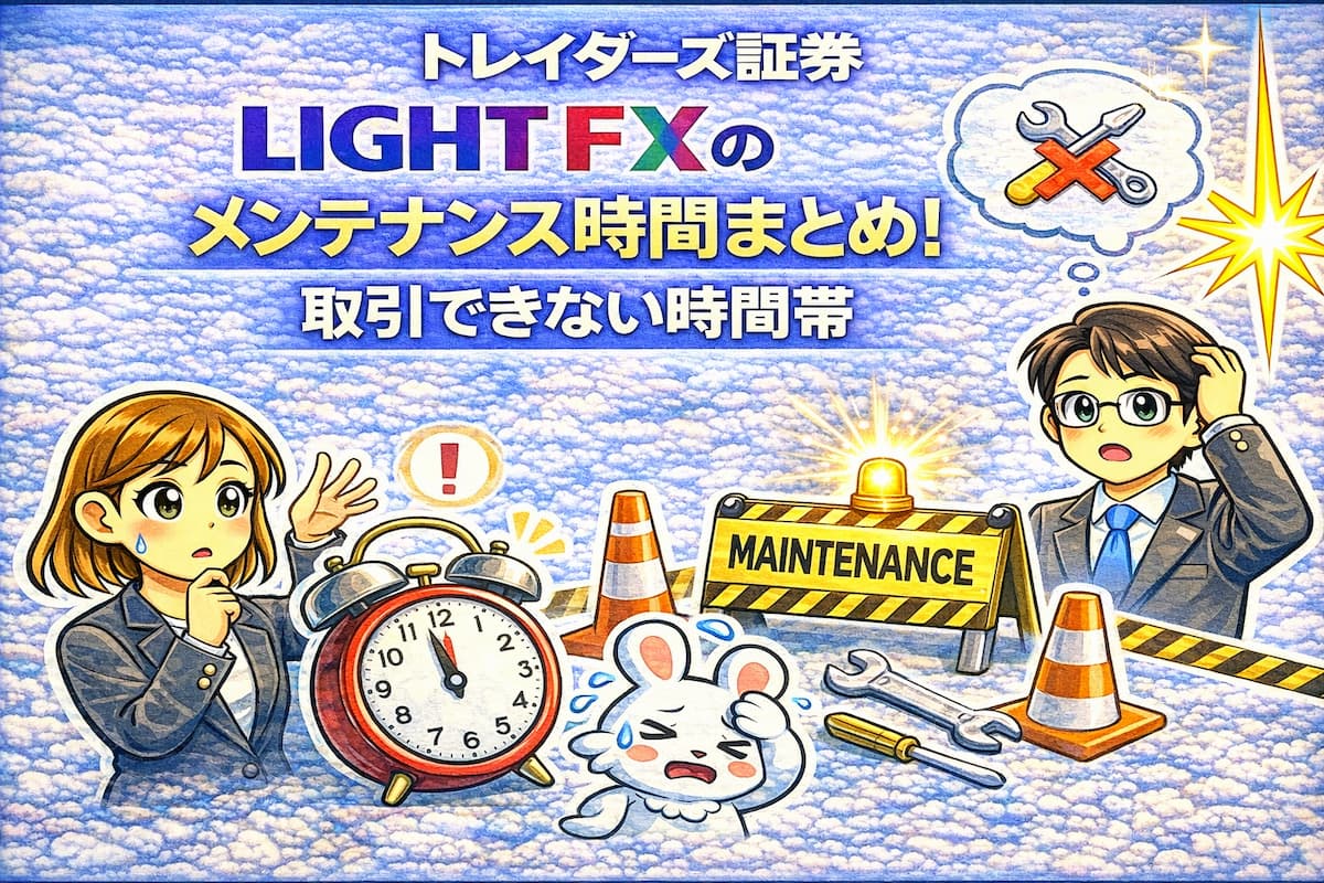 トレイダーズ証券の「LIGHT FX」は非常に高いスペックを誇りますが、システムを正常に保つためのメンテナンス時間は必ず存在します。この時間帯を把握していないと、重要な局面で注文が出せなかったり、ロスカットの準備ができなかったりと、予期せぬ損失を招く恐れがあります。本記事では、毎日・週末の定期メンテナンススケジュールから、入出金への影響、さらにはメンテナンスを跨ぐ際のポジション管理術まで、トレーダーが知っておくべき全知識を徹底解説します。