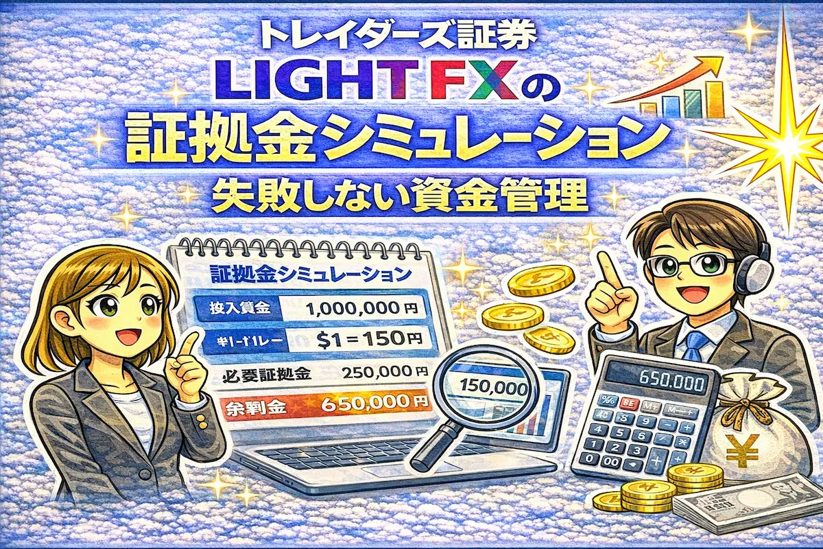 FXで生き残るために最も重要なのは、チャート分析のスキルではなく「資金管理」です。トレイダーズ証券のLIGHT FXは、1,000通貨という少額から取引できるため初心者にも優しい設計ですが、証拠金の仕組みを正しく理解していないと思わぬ損失を招くリスクがあります。本記事では、LIGHT FXにおける必要証拠金の計算方法から、強制ロスカットを回避するための具体的なシミュレーション、そして複数ポジションを持った際の証拠金ルールまで、数字を交えて徹底的に解説します。