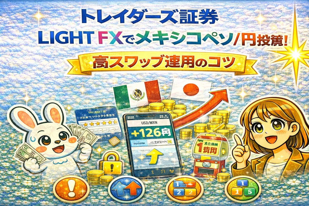 特にトレイダーズ証券の「LIGHT FX」は、メキシコペソのスワップ付与額において業界最高水準を長期間維持しており、投資家にとっての「聖地」とも呼ばれています。しかし、高金利通貨には特有のリスクもあり、正しい「証拠金管理」と「銘柄選び」を知らなければ、一瞬の暴落で資産を失う危険もあります。本記事では、LIGHT FXを使い倒してメキシコペソで着実に資産を増やすための、具体的かつ実践的な戦略を圧倒的ボリュームで徹底解説します。