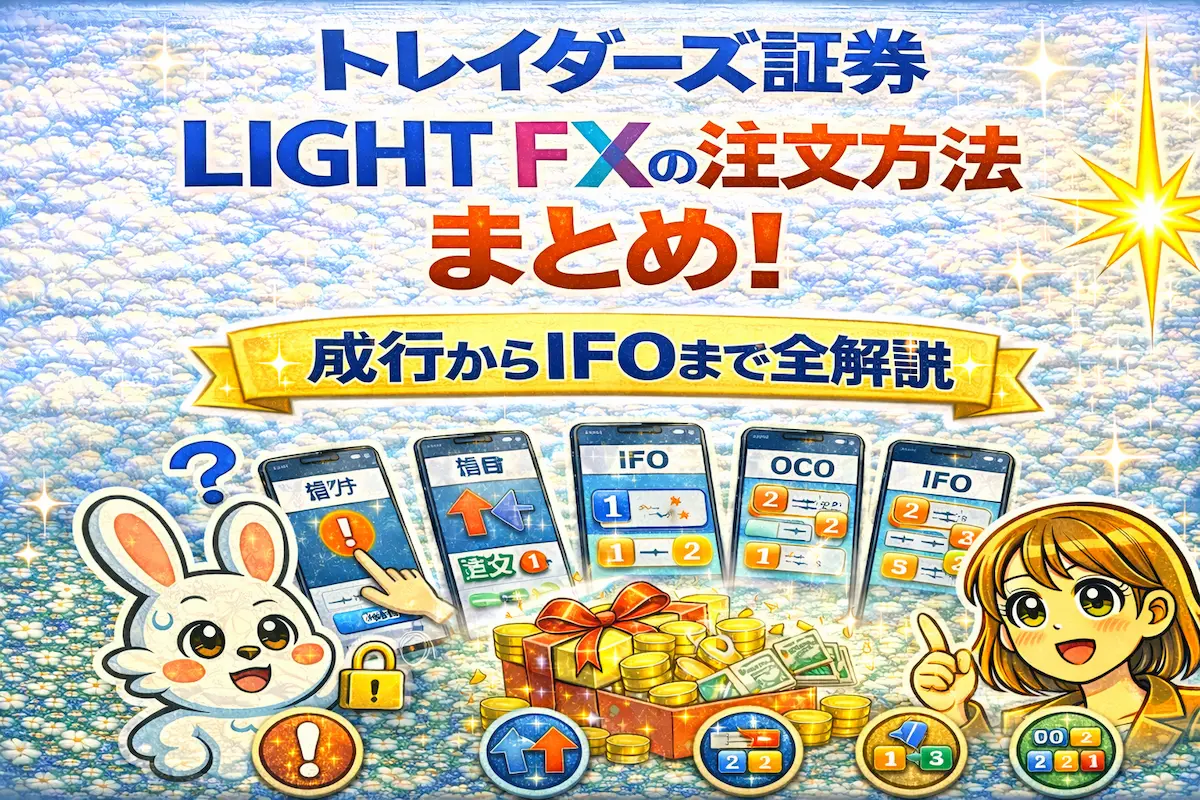 トレイダーズ証券の「LIGHT FX」には、瞬時の判断を形にする「成行注文」から、高度な自動売買に近い予約ができる「IFO注文」まで、プロ顔負けの機能が凝縮されています。しかし、それぞれの注文がどのようなロジックで動き、相場環境によってどちらを選ぶべきかを知らなければ、チャンスを逃すばかりか予期せぬ損失を招くこともあります。本記事では、全注文機能の仕組みと、スマホアプリでの具体的な操作手順、さらには勝率を高めるための注文戦略までを、圧倒的ボリュームで徹底解説します。