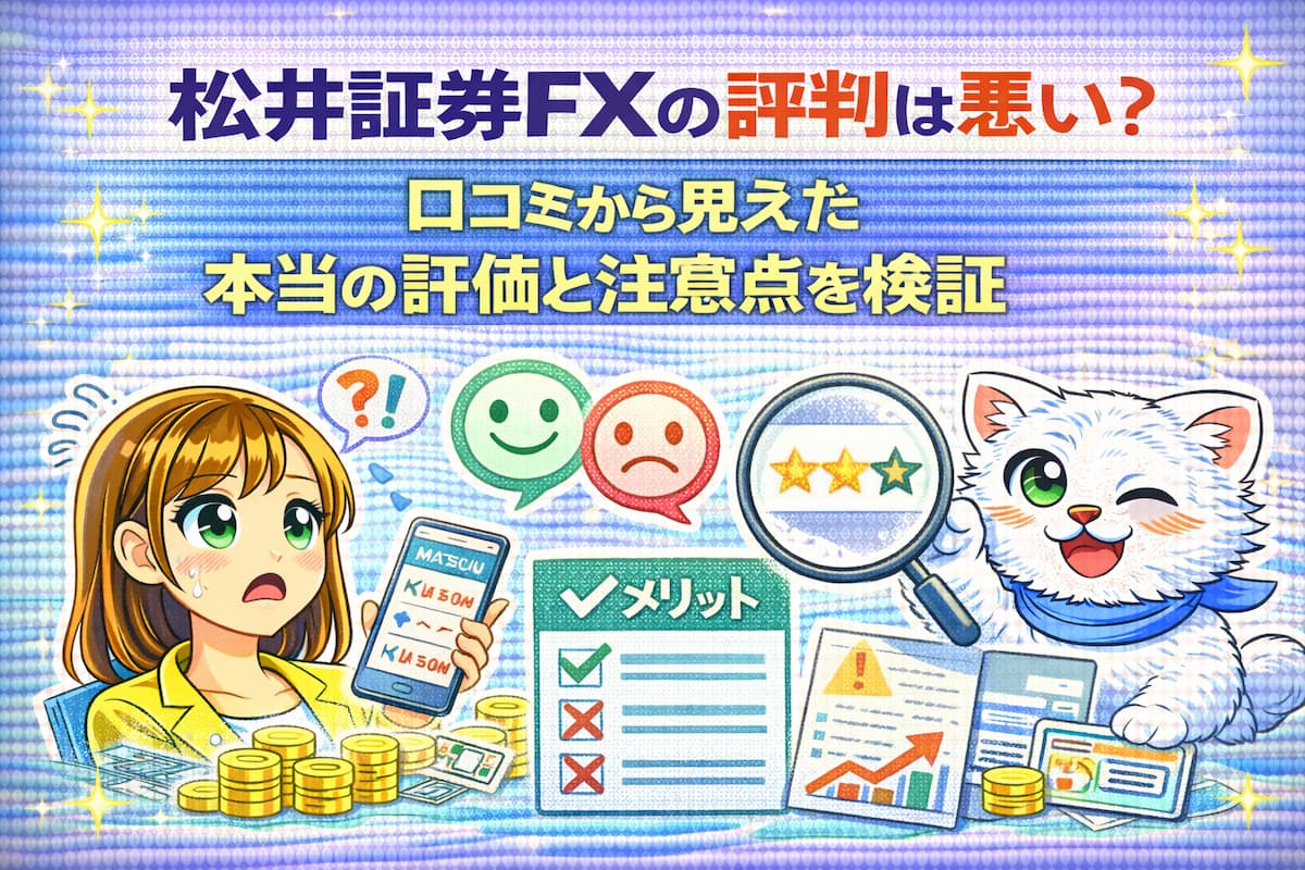 「松井証券FXの評判って実際どうなの?」「1通貨取引は魅力的だけど、裏があるのでは?」 新しいFX口座を開設する前、誰もが抱くこの疑問。SNSや掲示板には、絶賛の声もあれば「使いにくい」といった辛口な意見も混在しています。 本記事では、2026年最新のリアルな口コミを徹底調査し、良い評判・悪い評判の両面から松井証券FXの正体を暴きます。 8,000文字を超える本気の検証で、あなたが松井証券FXを選ぶべきかどうかの最終判断をサポートします。
