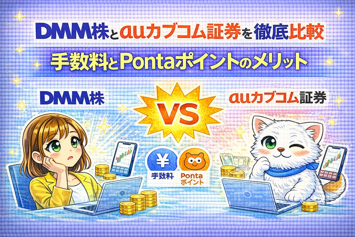 免責事項:本記事は2026年1月時点の公開情報を基に比較・作成されています。auカブコム証券、DMM株それぞれのサービス内容、手数料、ポイント付与条件(auマネ活プラン等)は変更される可能性があります。必ず各社の公式サイトにて最新情報をご確認ください。