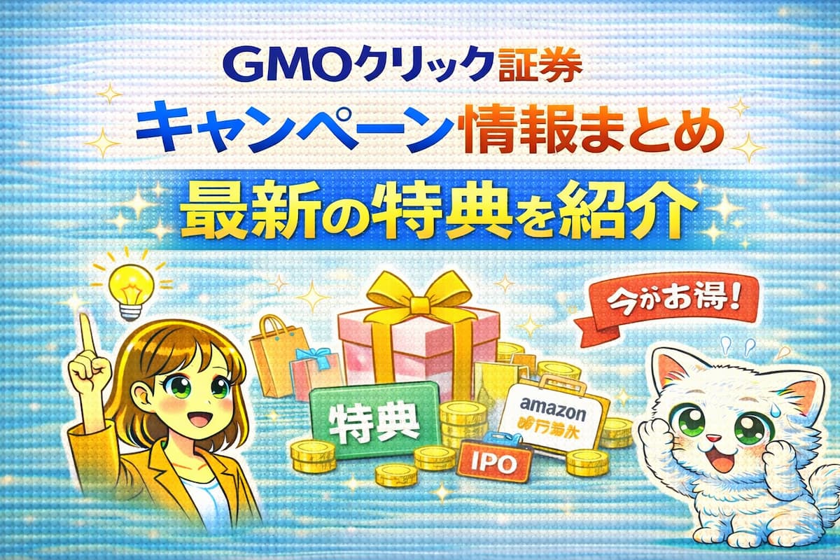 免責事項:本ページに掲載されているキャンペーン情報は、2026年1月現在の調査に基づくものです。各特典の内容や適用条件は、市場環境の変化等により予告なく変更・終了する場合があります。最新の正確な情報は、必ずGMOクリック証券の公式サイトにてご確認ください。